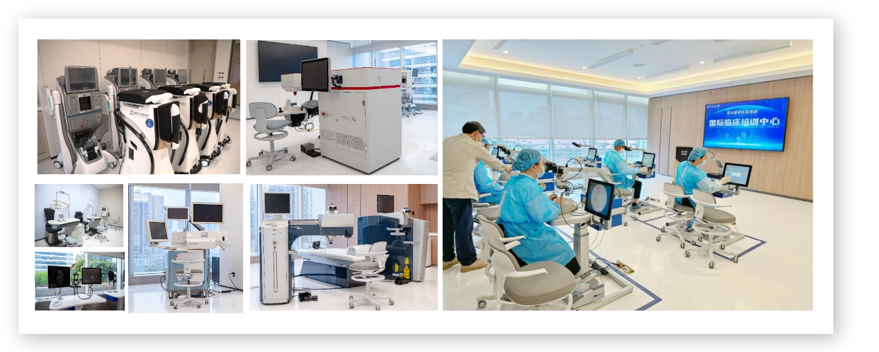 AICTC配備了VRmagic Eyesi白內障&眼底手術模擬器、Eyesi檢眼鏡模擬器、WaveLight、VisuMax、MEL90、LenSx、Catalys、Constellation、Centurion、Legion、Angio-OCT、IOL-Master、PENTACAM等上百臺國際一流的眼科培訓、檢查與手術設備。