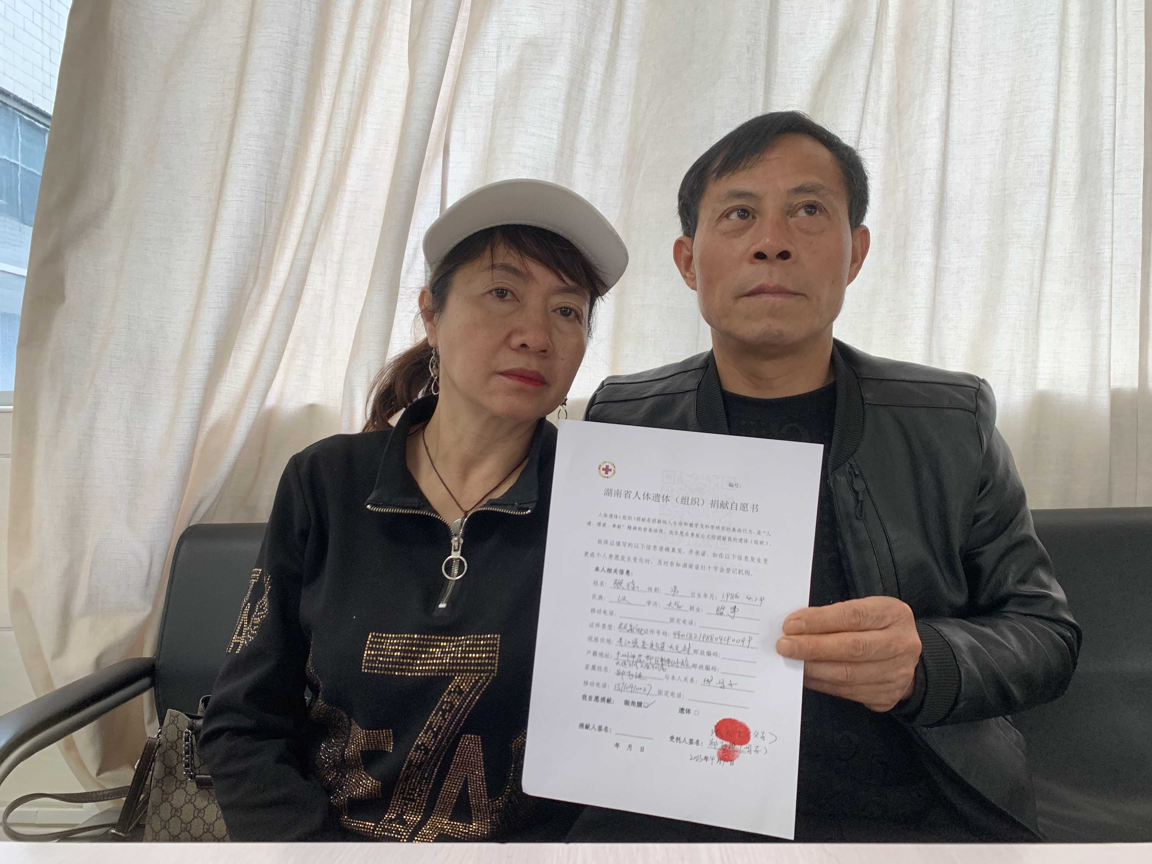 ▲張瓊父母簽署湖南省人體遺體(組織)捐獻(xiàn)自愿書