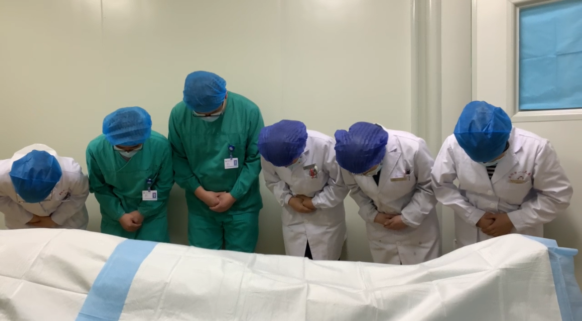 ▲醫(yī)護(hù)人員向張瓊致敬默哀