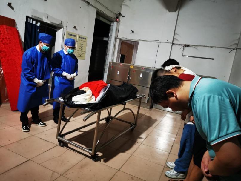 ▲紅十字會和醫護人員向何繼東遺體鞠躬