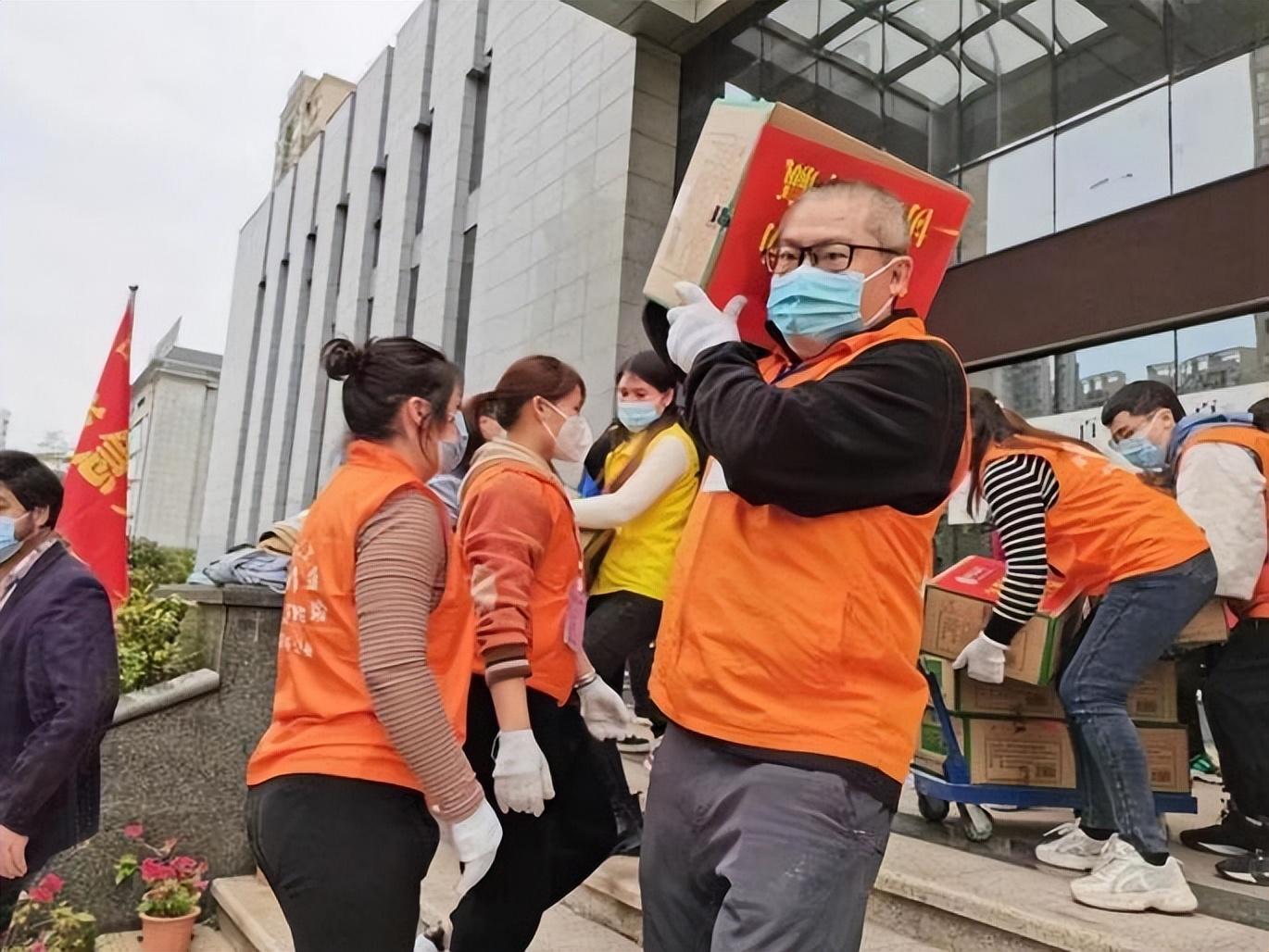 ▲發病前四天(6月14日),何繼東(左2)帶領志愿者開展城市園林工人慰問活動