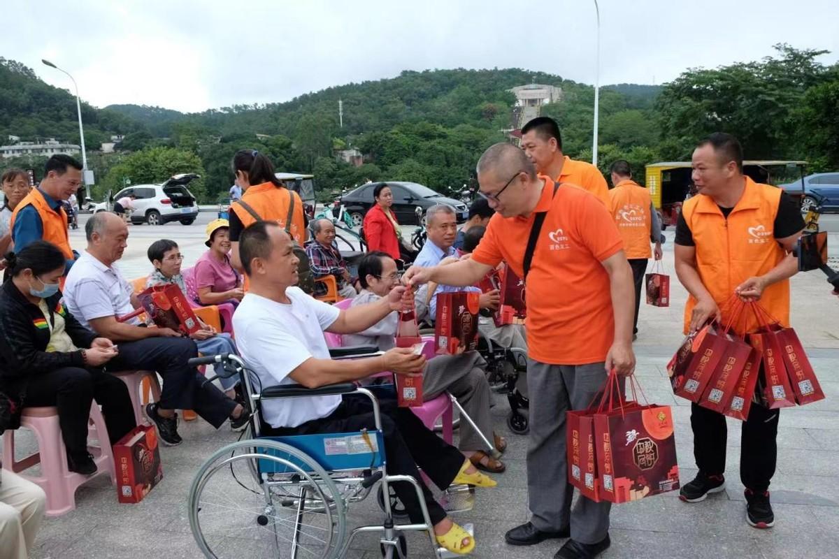 ▲壹方基金、百色市義工協會、陽光助學愛心協會,百色市草根公益協會、中桂摩托車等團隊志愿者們送別何繼東